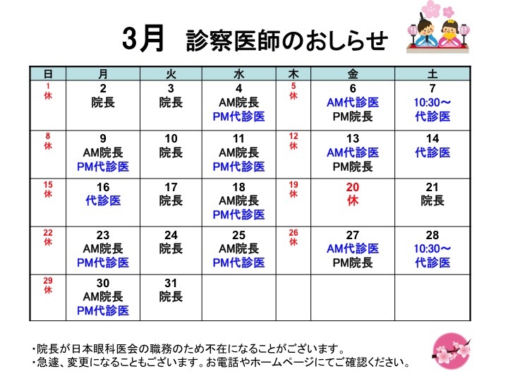 ■診療時間の変更や、臨時休診の場合もございますのでご確認ください。